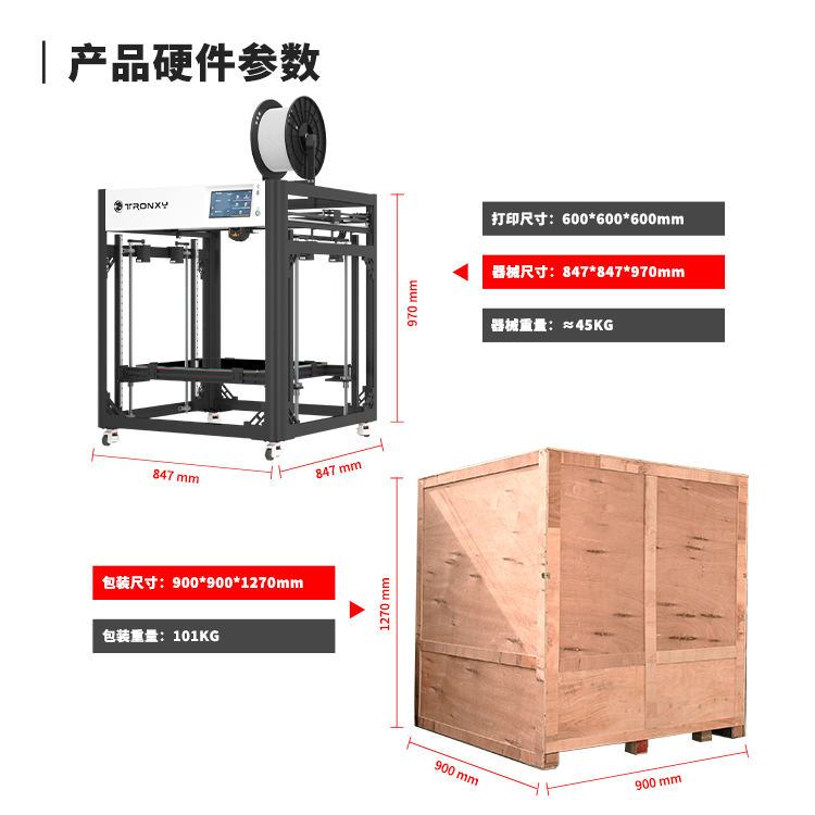 热床部分:785*672*205mm/导轨部分:995*302*370mm