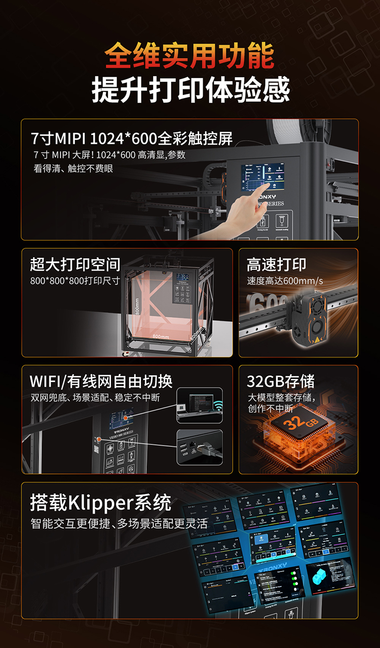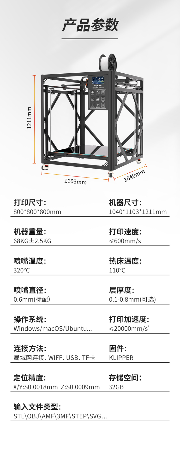 打印头最大移动速度300mm 最大加速度 10000/s² 热端最大流速 32mm³/s